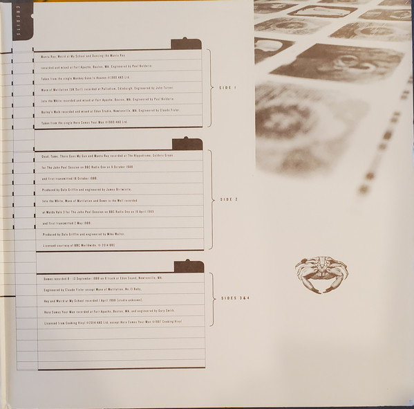 Record 3 “original album” has side ONE and side TWO on the labels and is housed in a die-cut inner sleeve (see images), unlike records 1 and 2. The three records, with the thick cardboard inners, do not fit within the two pockets of the gatefold. Appears record 3 was an afterthought.