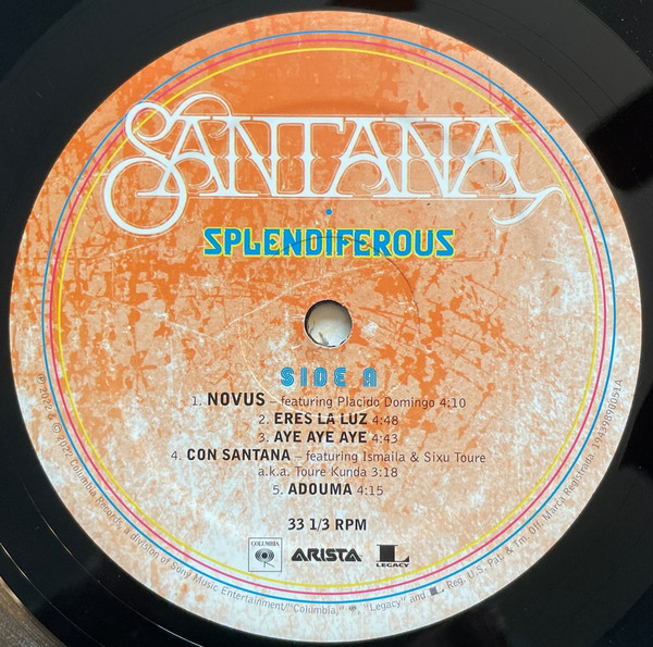 2022 Record Store Release. The inner sleeve liner notes by Carlos Santana, Tommy Anthony & Karl Perazzo are taken from the 30-song compilation “Splendiferous Santana” which was released for streaming on Friday, July 2 2021.