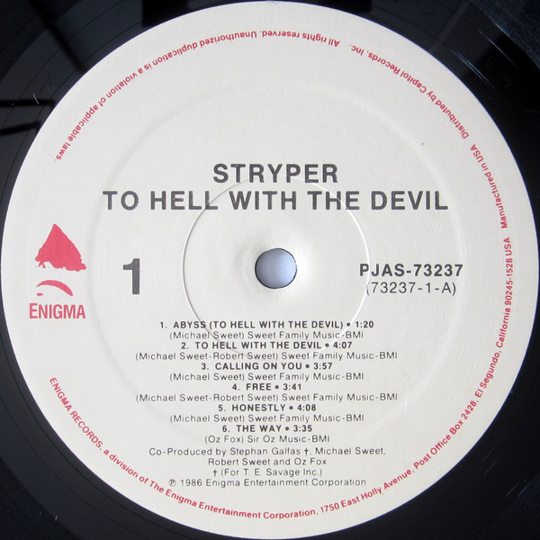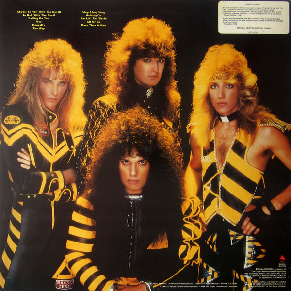 Released in a gatefold sleeve with controversial “angel” artwork, later replaced with a [url=https://www.discogs.com/Stryper-To-Hell-With-The-Devil/release/5801962]text-only cover[/url].