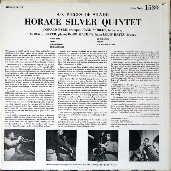 Address, bottom back cover: BLUE NOTE RECORDS INC., 47 West 63rd St., New York 23