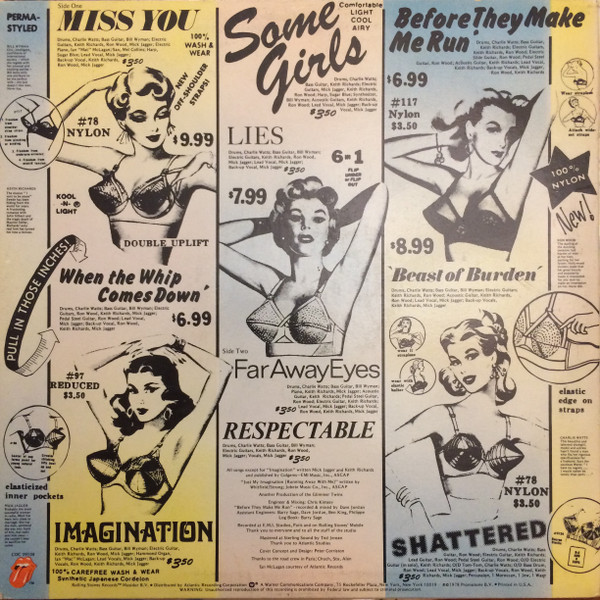 Yellowish-Bluish-Reddish-Greenish (pale colours); “Some Girls” title typed in blue.